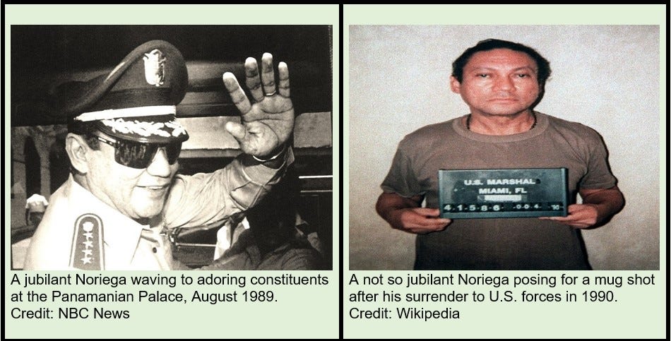 Needless to say, the clock ran out for General Noriega in 1990 when he surrendered to US Forces and was transported to Miami where he stood trial and was convicted of a host of charges in federal court.
