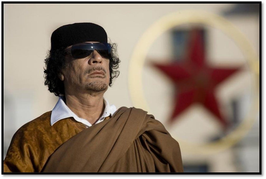 For many Americans over 30, the name Muammar Gaddafi conjures up a list of demonic labels: dictator, tyrant, lunatic. With the helpful assistance of deep state news outlets, they’ve come to view Colonel Gaddafi as an outrageously corrupt, over-the-top whack-job with an obsession for oversized sunglasses, in dire need of a personal hair and wardrobe stylist.